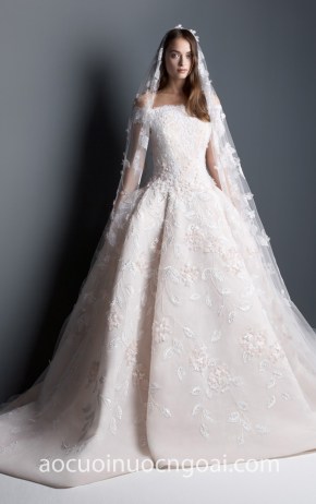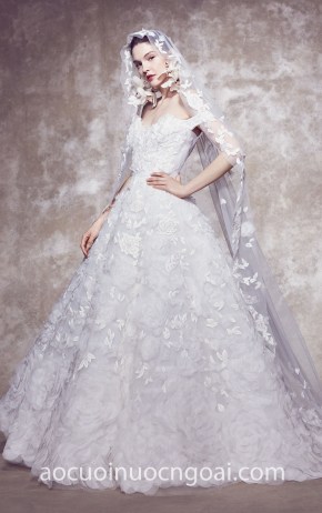ÁO CƯỚI CÔNG CHÚA XẾP HOA 3D ẤN TƯỢNG NN7064