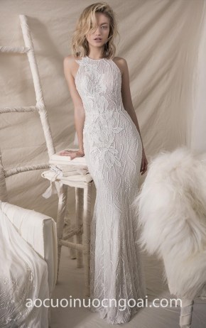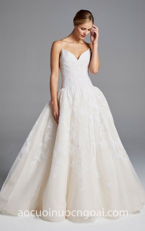ÁO CƯỚI CHỮ A XẺ NGỰC THÊU REN NN5823