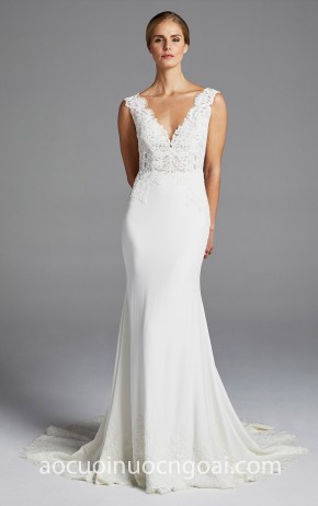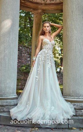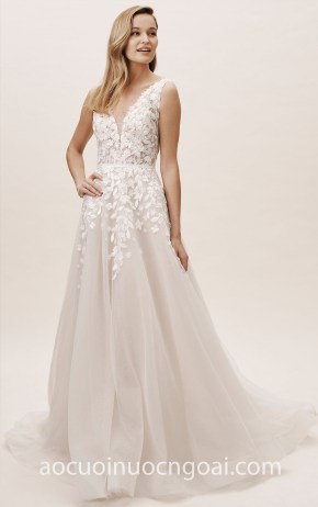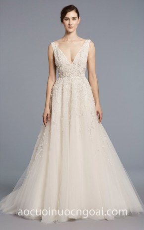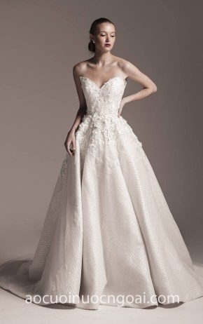 ÁO CƯỚI CHỮ A XẺ NGỰC V ĐÍNH ĐÁ NN5803