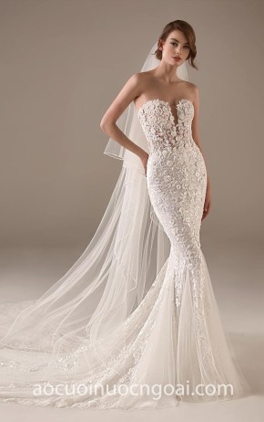 ÁO CƯỚI ĐUÔI CÁ CÚP NGỰC LƯỚI ĐÍNH REN HOA 3D NN7836